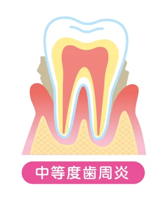 中等度になると、歯茎の炎症が顎の骨にまで達します。